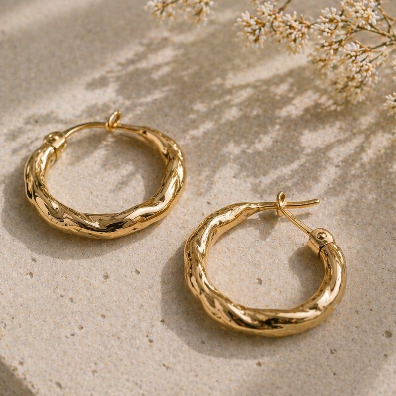 A thick bonded layer of 14k gold over a brass core — resistant to tarnish and made to be worn every day.